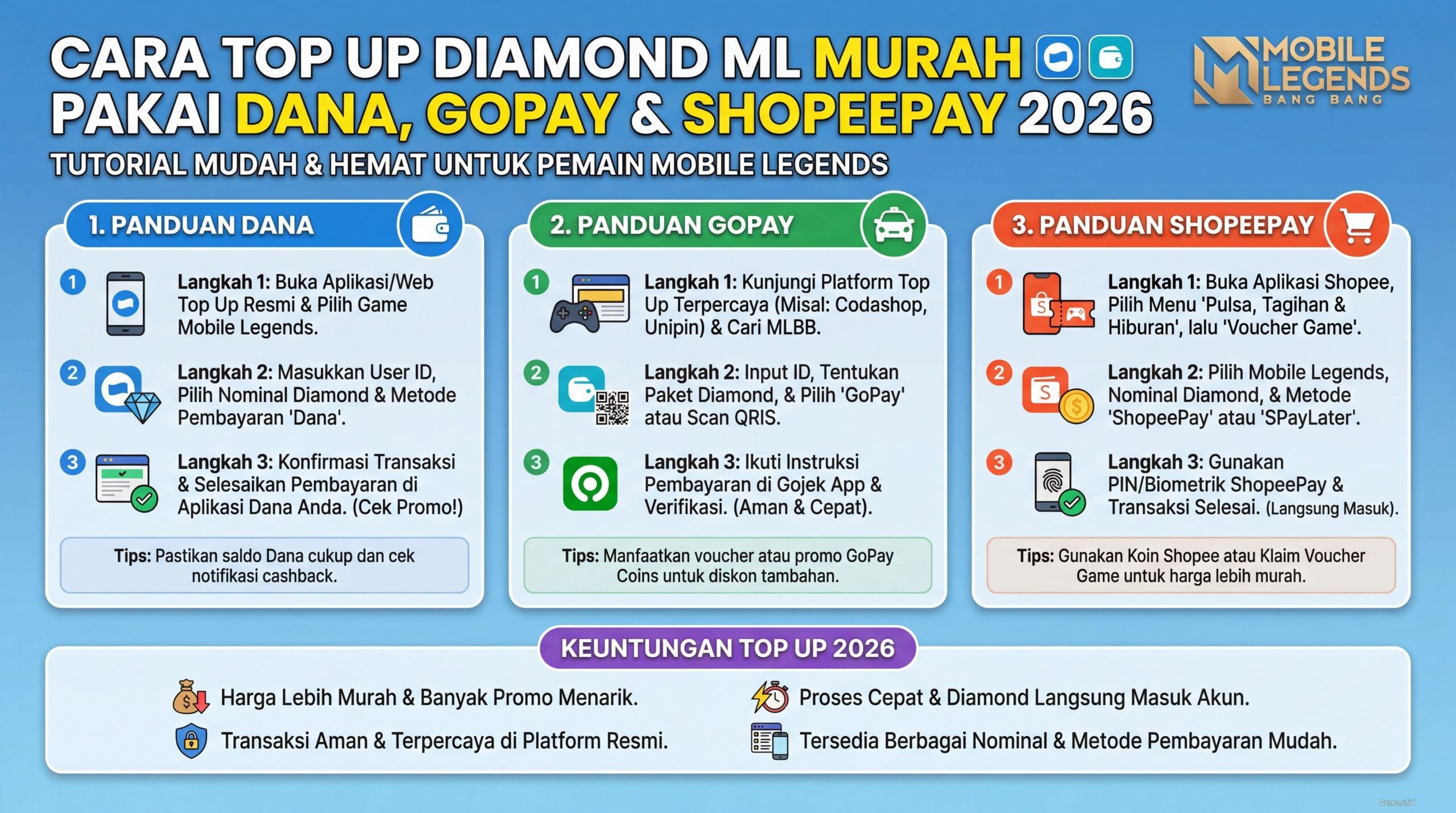 Cara Top Up Diamond ML Murah Pakai Dana, GoPay & ShopeePay 2026
